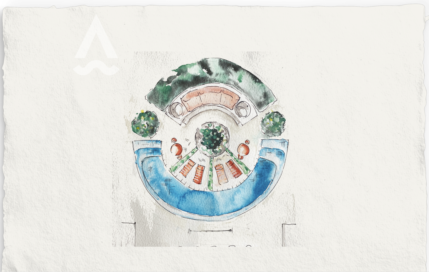 This includes pool form, positioning, materials, features, and surrounding landscape zones.